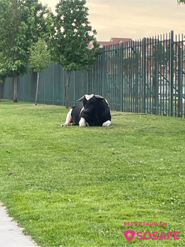 Hay un toro acostado en los pastos del jumbo y es intimidante ya que muy grande y tiene sus cachos. Peligroso para la gente y las mascotas que pasan por ahí